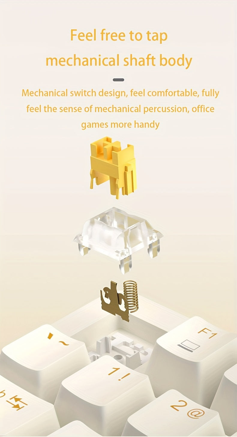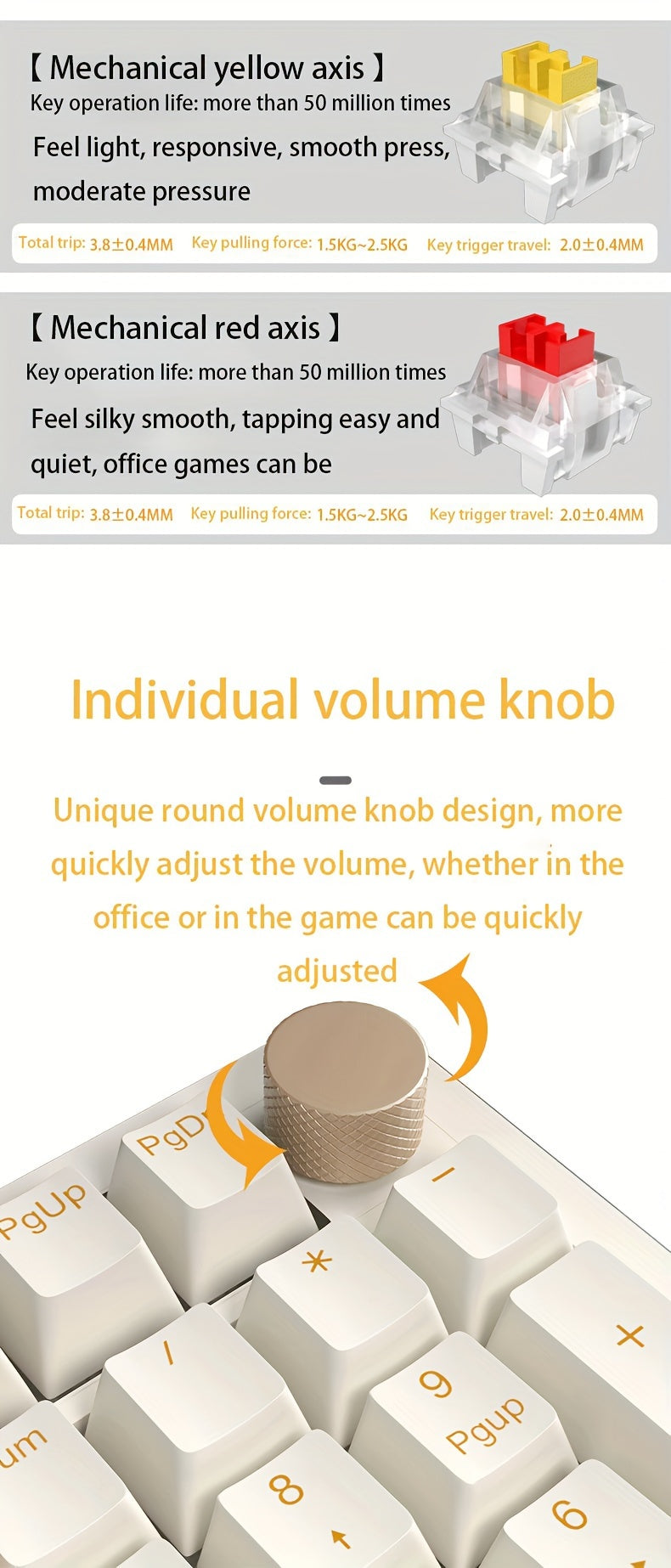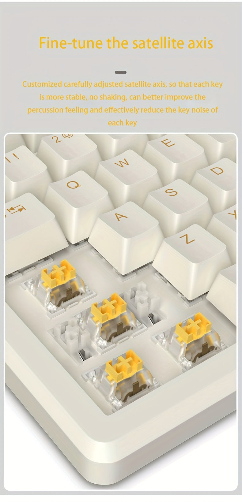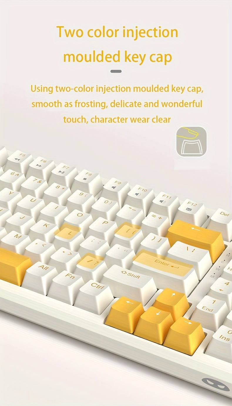 • High-Quality Practical Design: This keyboard has 98 anti-ghosting keys, a durable metal panel, and a stylish white and yellow design. It also includes 16 extra yellow keycaps, low-profile ergonomic double-shot keycaps, and dual adjustable kickstands.