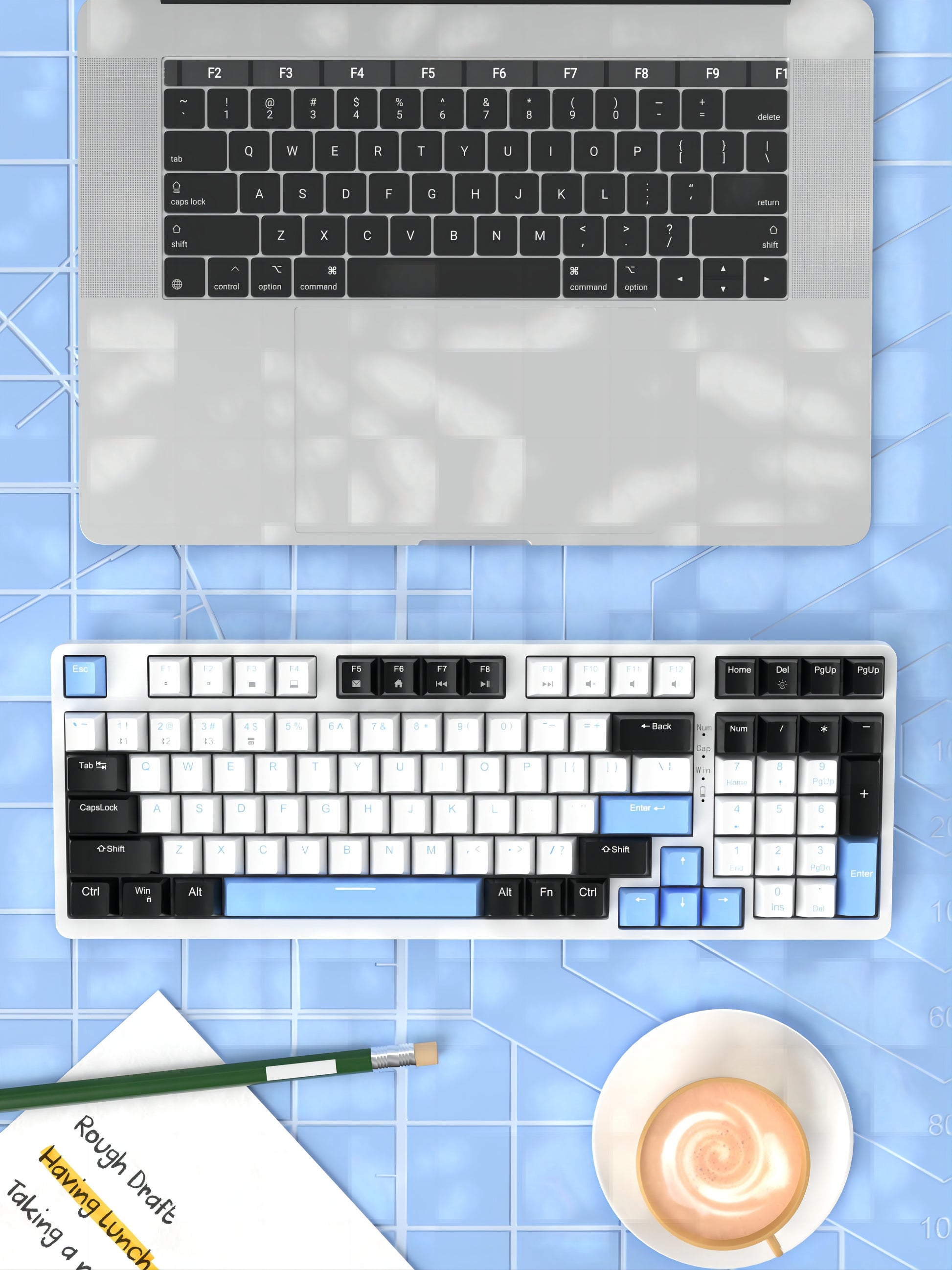 • Compact 96% Unique Layout: This keyboard combines compactness with functionality by separating the arrow and numeric keys, offering more desktop space and accommodating user habits. It provides a perfect balance of compact design and functionality compared to a traditional 104-key keyboard.